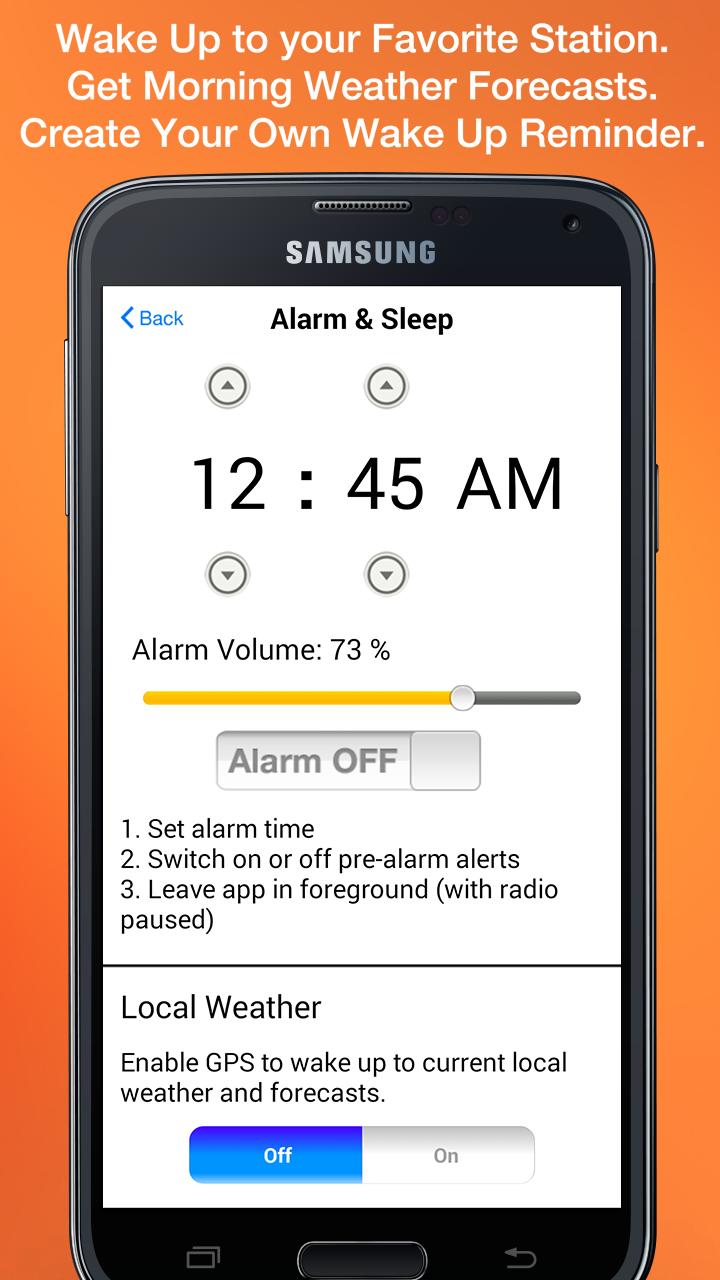- Wake up to your favorite station with our alarm clock. Record a personal reminder to play before waking to the station.