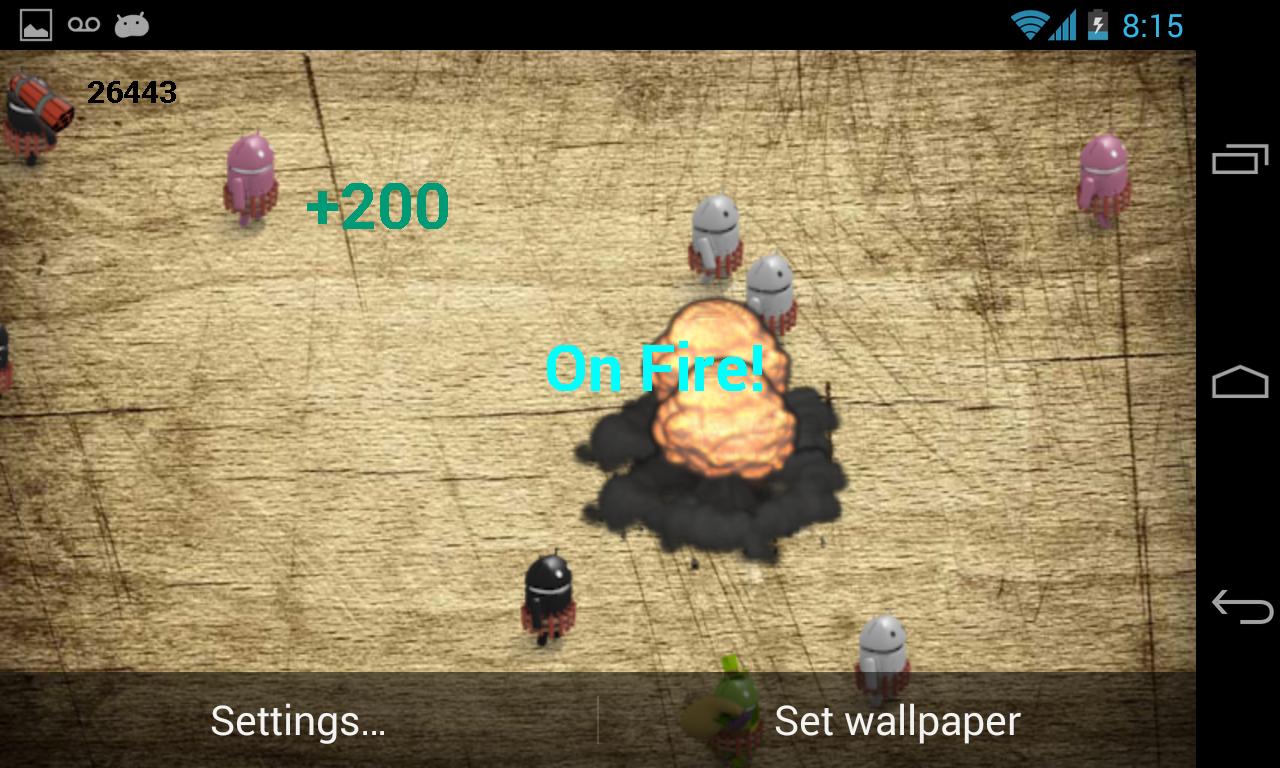 Have fun in your Live Wallpaper, explode as many androids as you can!