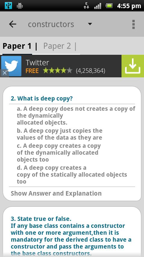 It has got theoretical C++ questions as well as C++ programming examples with clear explanations.