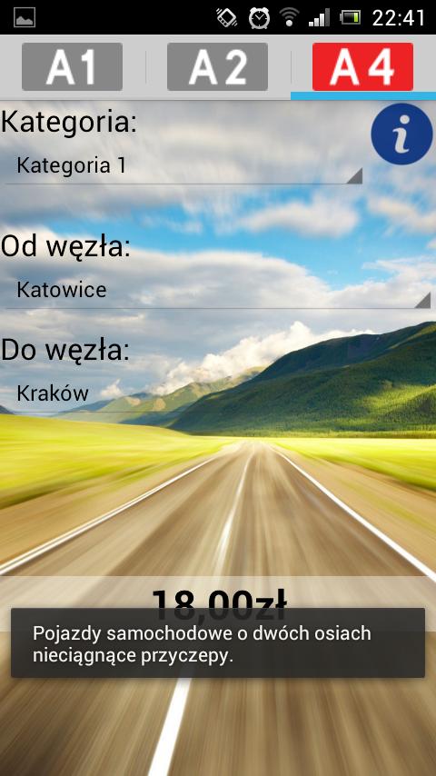 With this application you will find out how much you will pay when driving paid highways, the application will calculate the cost of travel from one motorway node to another.