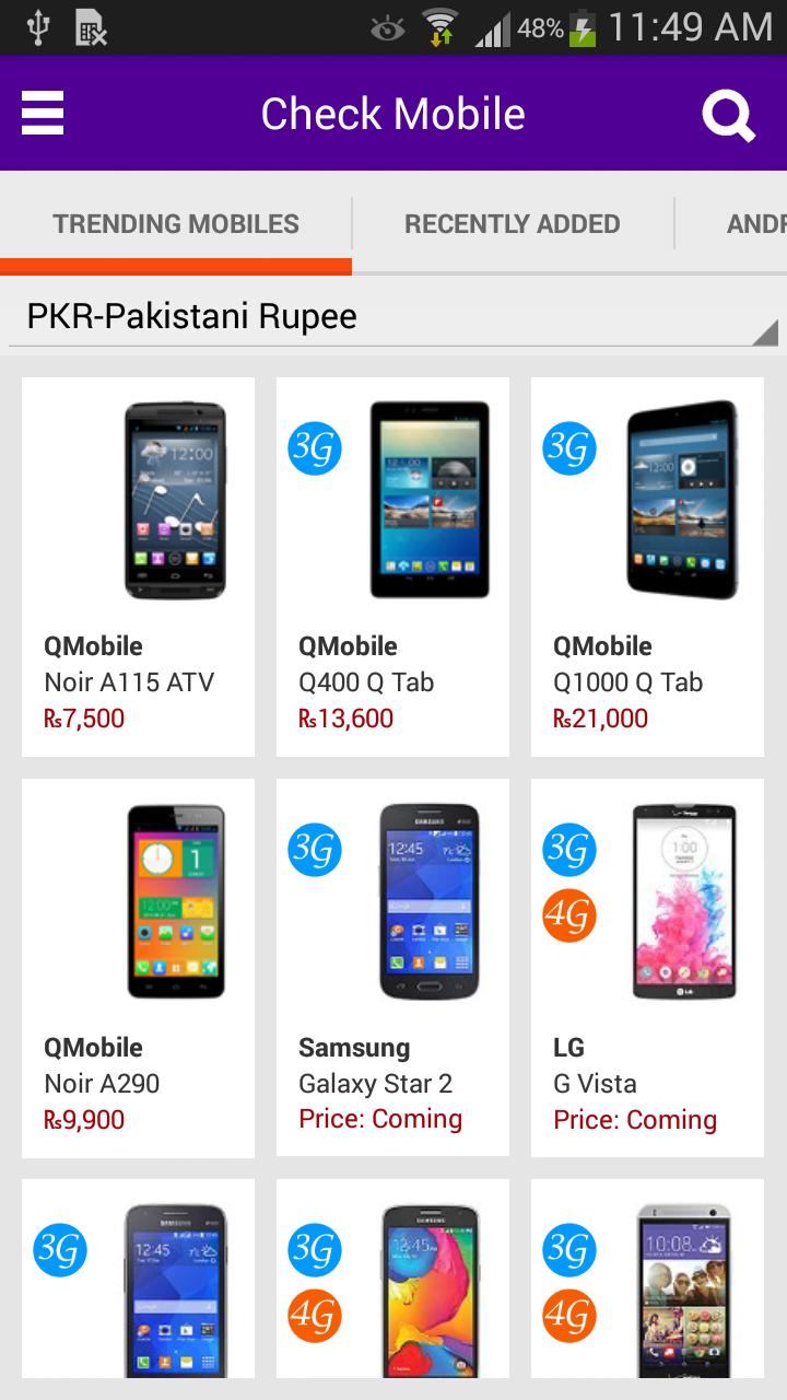 With CheckMobile loaded on your android device you can check specification and price of mobile phones anywhere. This wonderful product s is loaded with hug database to provide all the details of latest up-coming mobile, tablet devices and existing mobile phone devices.