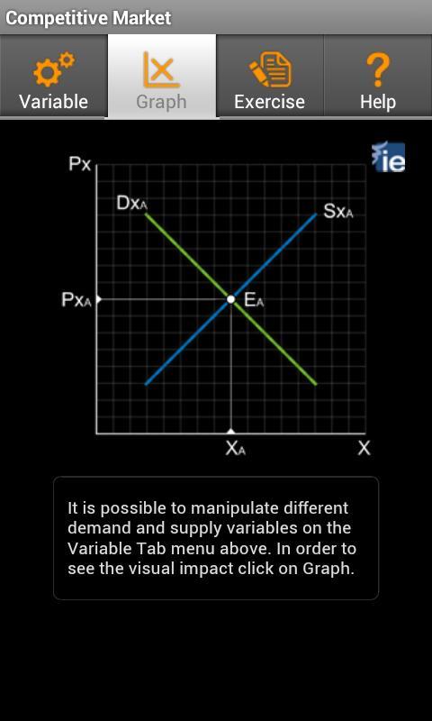 With this app students can interact with both curves and see the equilibrium point in terms of price and quantity demanded. This tool allows students to complete exercises relating to the subject and put into practice their knowledge.