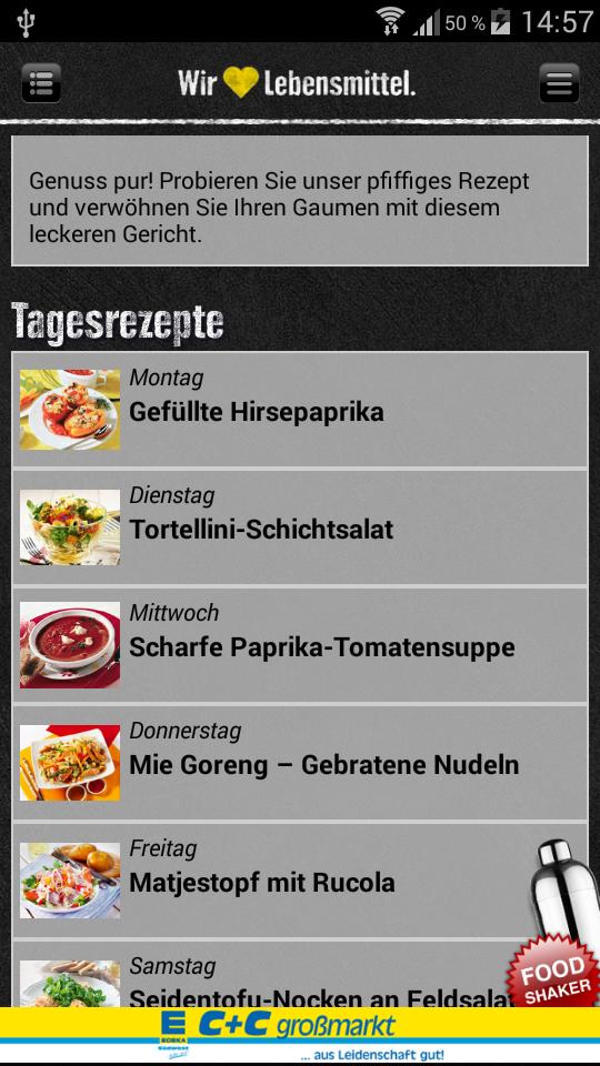 You will find unique features on our C +C app, such as the food shaker, a QR scanner for recipes, LMIV data search etc.