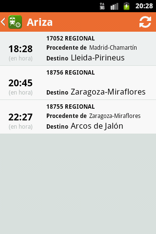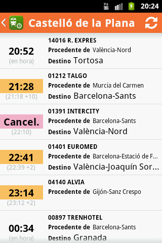 EnHora allows you to carry the arrivals and departures panels of the main train stations in Spain on your mobile. Consult Renfe traffic information in real time and find out in seconds if the train you have to take runs on time, or if you will arrive at your destination late.