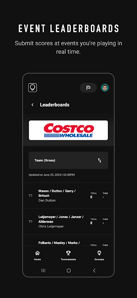 • Players use the mobile-app to live-score during competitive events, leagues, and charity outings using GolfStatus.