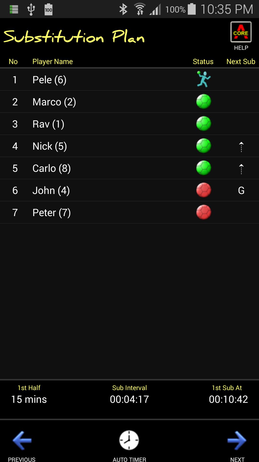 Indoor Soccer Subs makes player substitution & rotation times easy !