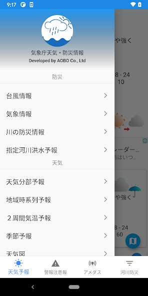 1, Weather forecasting and all kinds of warnings information published by Japan Meteorological Agency.