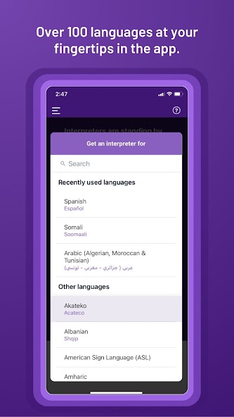 - Fast: Our Direct To Interpreter platform connects you in seconds