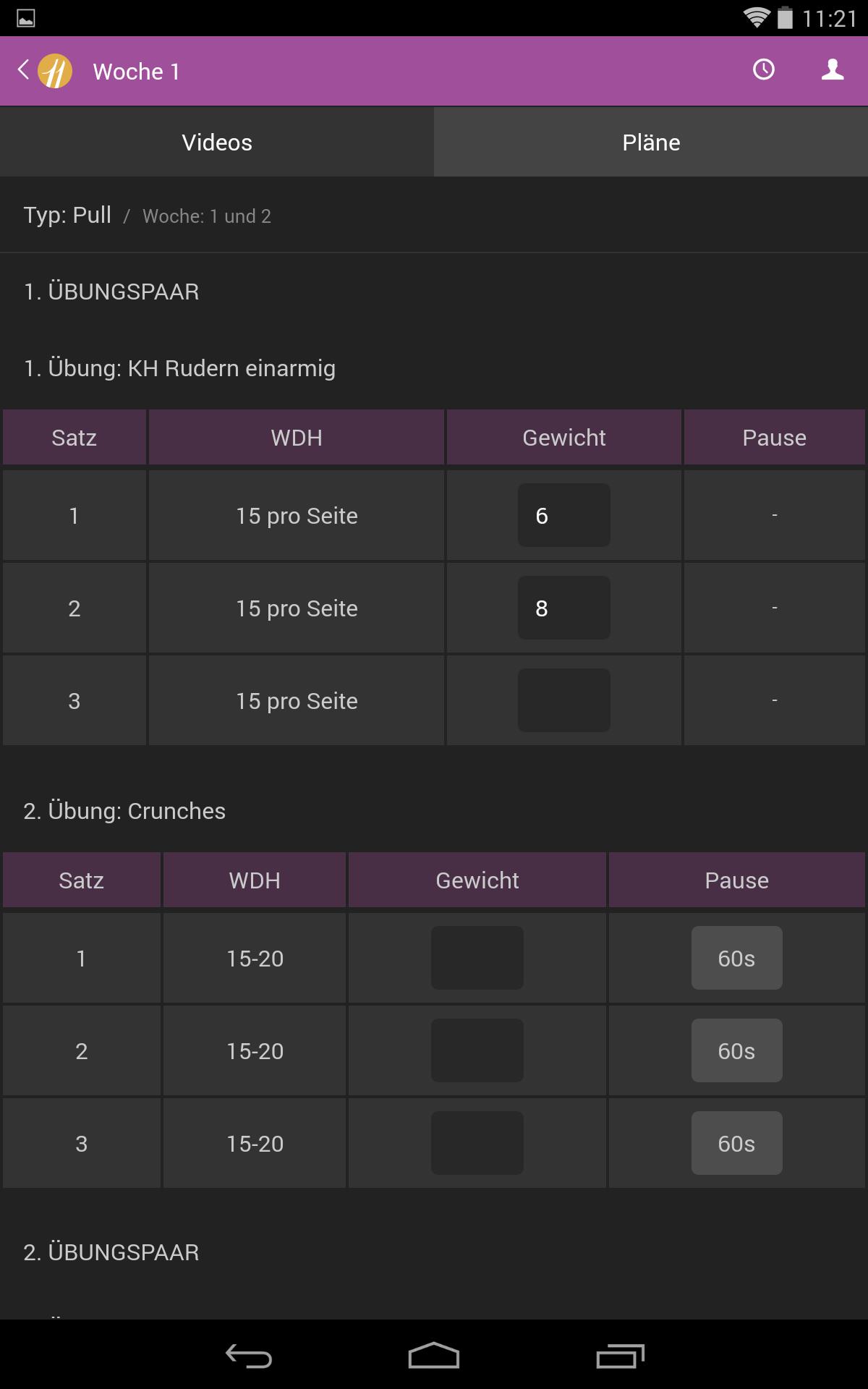 • Adaptable training plans in which you can enter your weight in order to document your strength increase weekly.