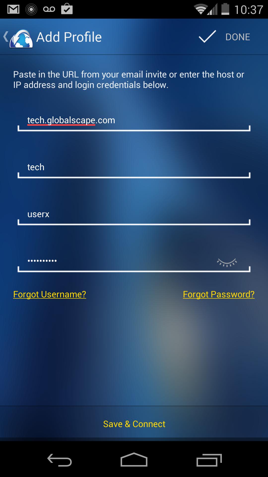 The Globalscape MTC app allows secure access to EFT data on mobile devices.