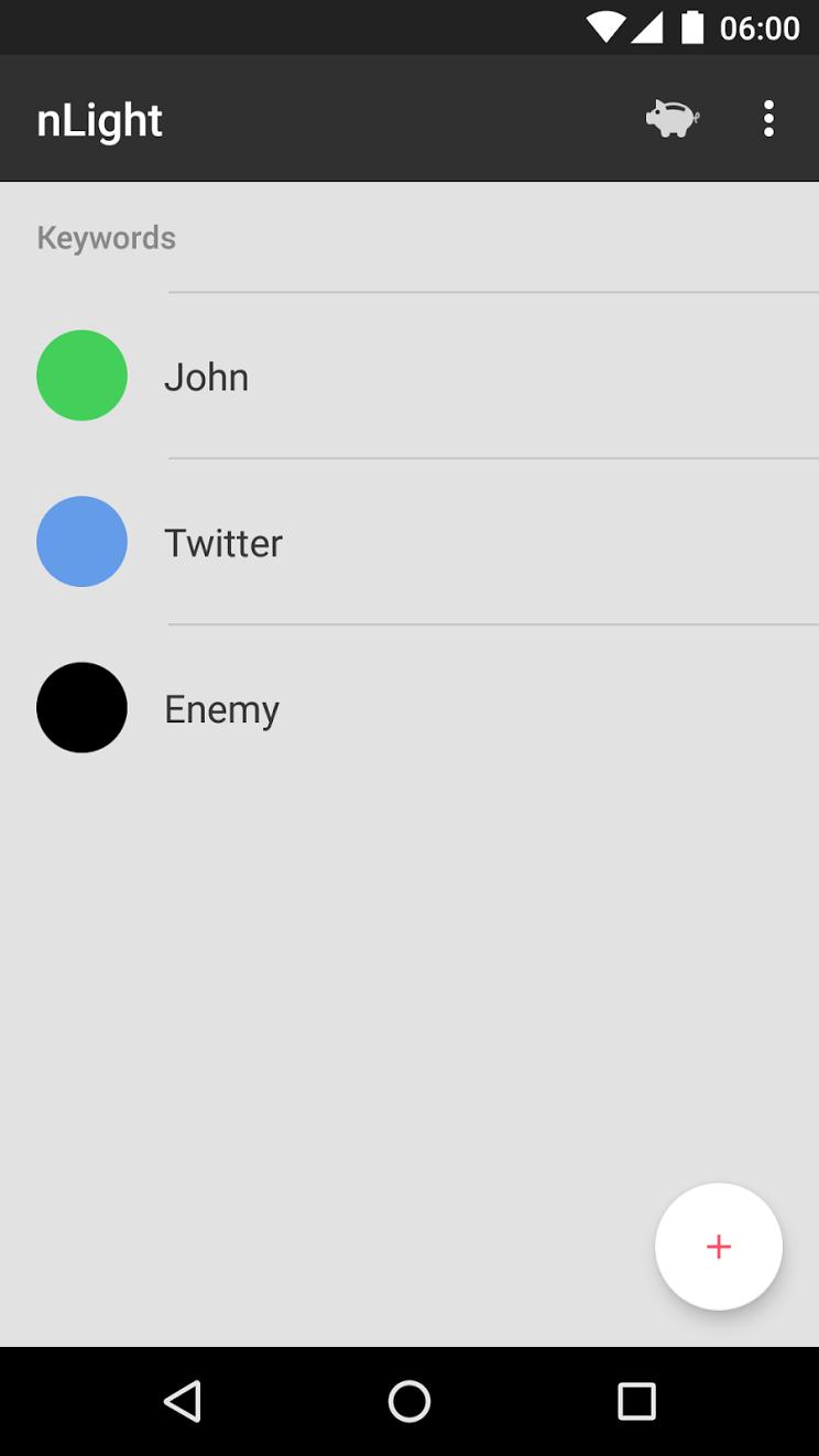With nLight you can easily assign a color to a text that appears in your notification. For example you can assign red color to the name of your girlfriend or boyfriend and the LED will blink red every time the name is found in the notification, regardless of the application that posted the notification.