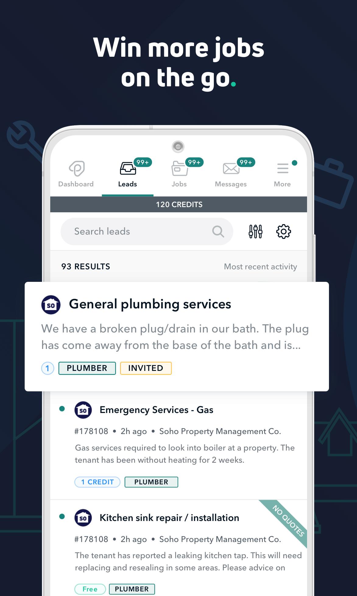 You can source and accept new jobs on the go, manage your incoming leads and choose when and where you want to work.