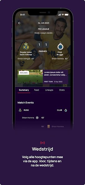 The Jupiler Pro League app ensures that you always have all the information about your favorite club(s) at hand. The calendar ensures that you do not have to miss a single match of the Jupiler Pro League.
