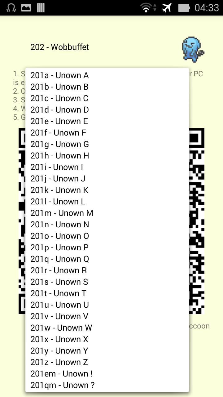 This app will help you to complete your Pokedex, you will find all 721 pokemons including every Unown forms, legendaries (Mew, Jirachi, ...) and unreleased pokemons (Hoopa, Volcanion) and their shiny form (except Unown B-Z, ! and ? ). Shiny locked pokemon included as well (shiny Celebi, Meloetta, Yveltal, Diancie, ...).
