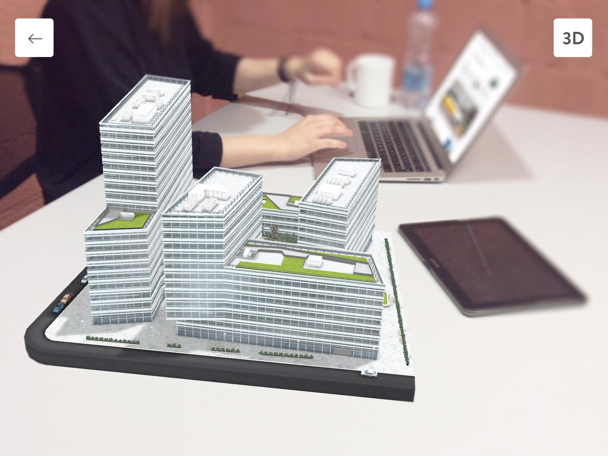An augmented reality architectural model of “Quadrum - Business City”, A-class office space in Vilnius, Lithuania.