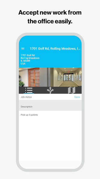 • Accept new work from the office without disruption, as well as update their job’s status.
