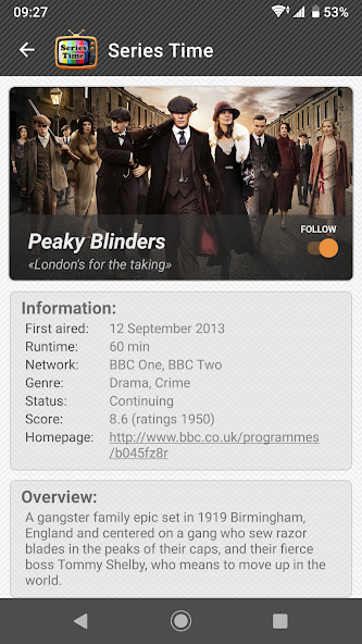 Do you like TV series? Do you want to know when will next episode of your favourite show go on the air? Just select series' to your liking from a list and keep close track of their schedules.