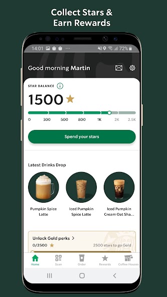 With the Starbucks® app you collect stars for free rewards and unlock all further advantages of the Starbucks® Rewards program.