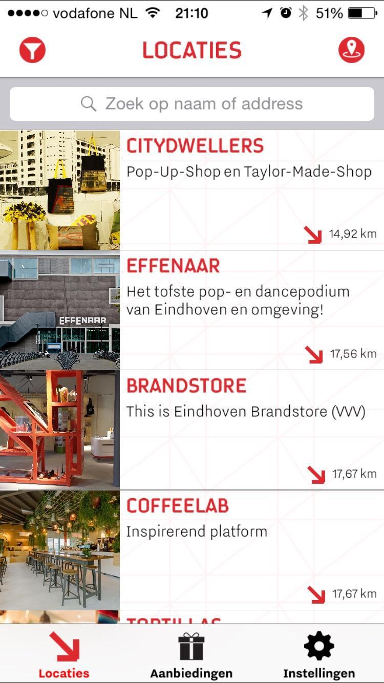 This is Eindhoven App is the official Digital City Guide for the best experience in the city center of Eindhoven. Find the best places to eat, drink and The Shopping in one of Europe's technology and design capitals, Eindhoven. ** Dutch Technology Week ** In this version we unlock the Dutch Technology Week at the This is Eindhoven Platform. Experience the DTW from 31 May to 6 June in an interactive way. See at a glance where there is something and when to do and let the Beacon Technology surprise you with fun and educational notifications. Coolest place care that you miss nothing of the coolest spots with this free app. In this app we have bundled the top 50 and leading places for you for the moment for you. Easy to use through a clear overview and an interactive map of the city. Best DealsWe have asked all affiliated locations to publish a 'best deal' especially for users of the This is Eindhoven app. Register in the Store, show your screen with the offer and immediately take advantage .Beacon technology newest iBeacon Technology is integrated into the This is Eindhoven app. The app will send you a message via Low Energy Bluetooth as soon as you arrive within reach of 2 meters from the store. In this way you will always be reminded of the coolest places with the best deals. App Developed This is Eindhoven App is still in a prototype phase with which especially users want to learn to improve the iBeacon experience. In the coming months we will further expand the app with new features such as events, exciting games and 'Urban Experiences'. Of course we also scale up the number of affiliated stores to create the best digital Eindhoven experience. -------------------------------------------------------------------------------------------------------------- This is Eindhoven APP is the official digital City Guide for the best inner city experience of Eindhoven. Find the best spots to hang out, to shop and find the best deals, in One of Europe's Technology and Design Capitals, The City Eindhoven in the Netherlands. ** Dutch Technology Week ** In This Version We Unlock The Dutch Technology Week on the This is Eindhoven Platform. Experience the dtw duration the 31st of May 'till the 6th of June in an interactive way. See in a Blink of An Eye Where and When All Events Are Organized and get suprized by Beyon Technology With Fun and Interesting Notifications.Coolest Places make Sure You Don't Miss Out On The Coolest Places with This Free App. In this app we bundled for you the top 50 newest and hottest places to be, when you enjoy our city. Easy to Access in one clear overview or accessible via an interactive map.best Dealsal venues published a 'Best deal' for all app users. All deals are combined and showed in one clear timeline and easy to use. Just show up at the store, show the screen and get the advantage of the deal.ibeacon technology the newest iBeacon Technology is integrated in the This is Eindhoven app. The app will remind you in the vicinity of 2 metres of a venue with a low energy bluetooth powered small message. Now you don't miss out of any cool places of best deals. App Developmentthe This is Eindhoven App is momentarily available in a prototype phase, for us to learn from you as a user to enhanance the iBeacon experience. Coming months we will develop the app with great new features like events, games and urban experience. We will scale up the number connected stores to create the best digital experience of the city of Eindhoven.