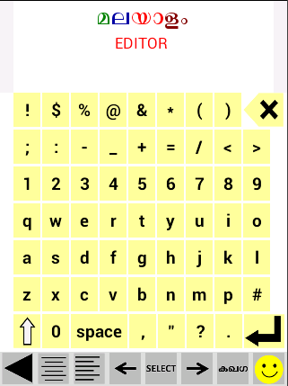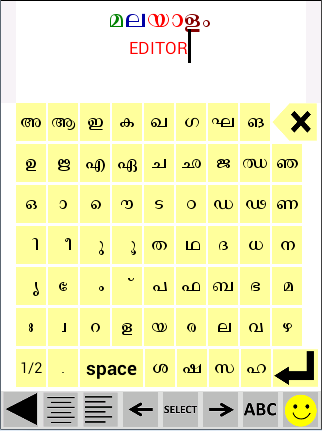 The Malayalam keyboard included in this app has a very simple layout. Malayalam keyboard has keys arranged in 'varnmala' order and English keyboard has qwerty like layout.