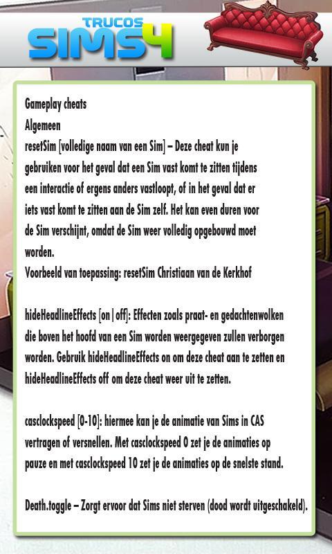 Trucos for Sims 4 provides you fast and easy access to all cheat codes for Sims.