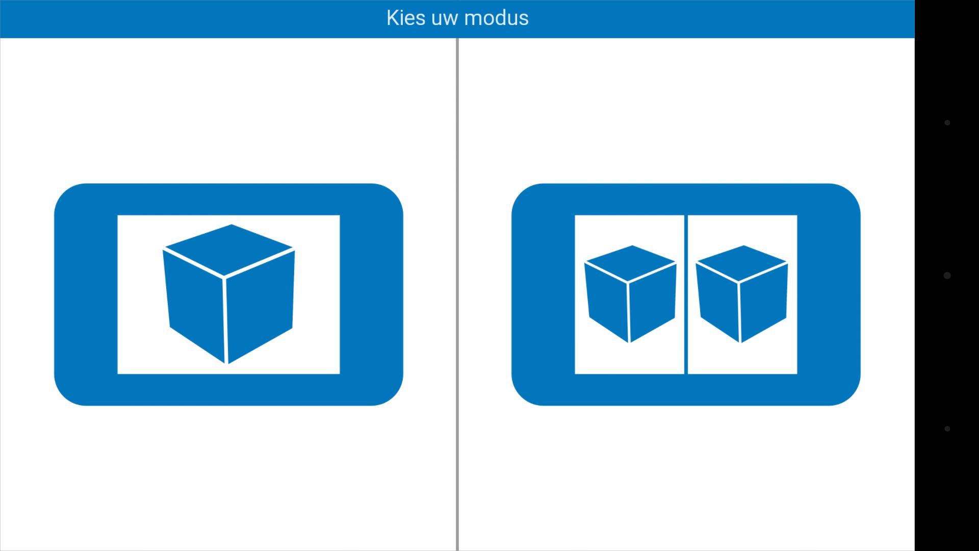 Walk through a virtual sports hall. Suitable for both the tablet and the phone. No cardboard? No problem! When starting the application on a telephone you can choose between 1 or 2 eyes mode.
