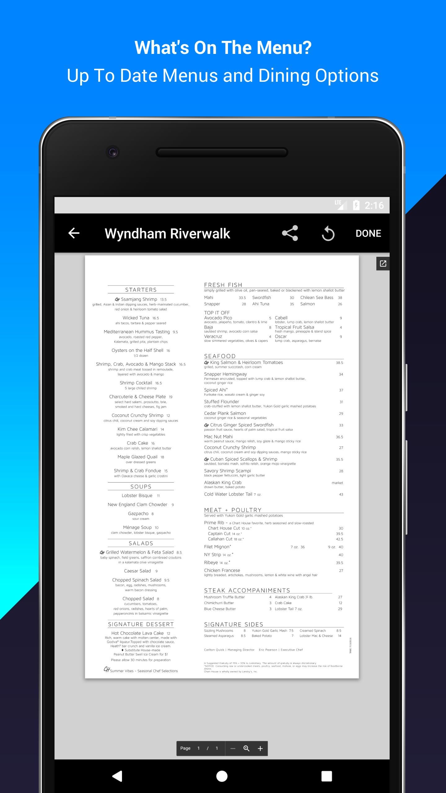 The Wyndham Riverwalk Virtual Concierge universal mobile app includes: