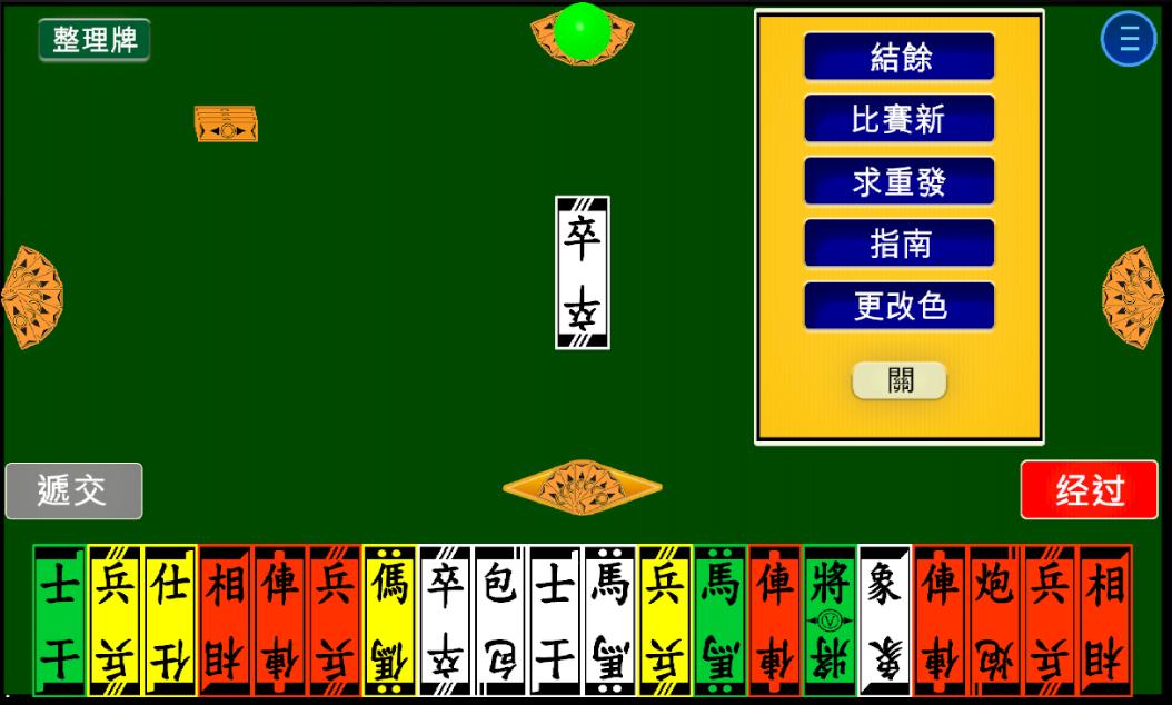 الاثنان الآخران هما البطاقات الأصلية الأربعة والألوان ، التي تستخدم شخصيات الشطرنج الصينية. قواعد الألعاب تشبه إلى حد كبير Mahjong. ألعاب البطاقات الأربع ألوان هي رومي.