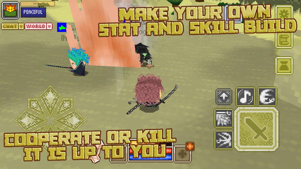تحتوي هذه اللعبة على عالم مستمر عبر الإنترنت ، مما يعني أنه لا توجد ضغطات أو "مثيلات". تتوفر الدردشة المحلية والعالمية والحفلات والهمس ، وحتى نظام نادي (نقابة) في مكانه ، والذي يتم تطويره حاليًا لتشمل المزيد من الميزات. يمكنك حاليًا الانضمام أو إنشاء ناديك الخاص وتصميم علامة نادي 16x16 الخاصة بك. التداول ممكن إما عن طريق بدء تجارة مباشرة مع لاعب آخر من أجل السلامة ، أو بمجرد إسقاط العناصر على الأرض لشخص آخر لالتقاطه.