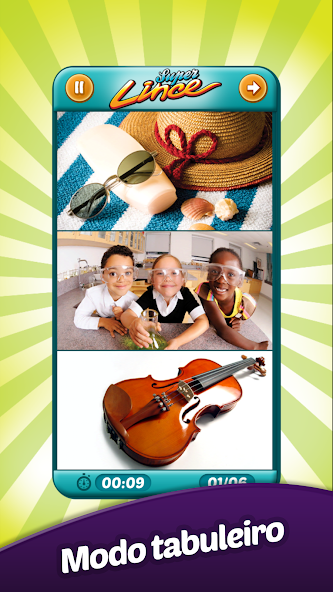 وضع الذاكرة الفائق: حفظ الصور الست التي سيتم عرضها. اضغط على زر "جاهز" عندما تجد كل منهم. إذن ، هل أنت مستعد للتحدي؟ بالإضافة إلى ذلك ، هناك وضع حصري لأولئك الذين لديهم بالفعل لعبة لوح " Super Lince " ، حيث يجب على اللاعبين العثور على صورة الشاشة على اللوحة. هناك ثلاثة مستويات صعوبة: سهلة (90 صورة) ، متوسطة (180 صورة) وصعوبة (270 صورة) ، وثلاث أوضاع للألعاب: صورة واحدة (1) ، ثلاث (3) صور وذاكرة فائقة. على الأخير ، تتغير الصور تلقائيًا كل 3 ثوانٍ. المسرحية أكثر متعة باستخدام الصور ، جربها!