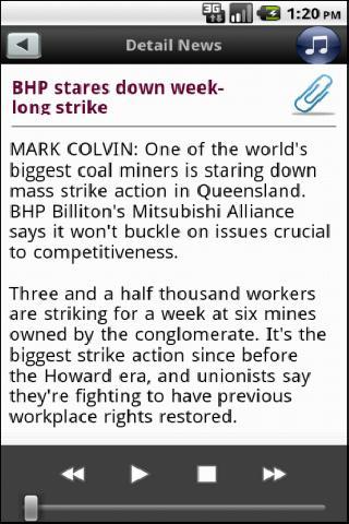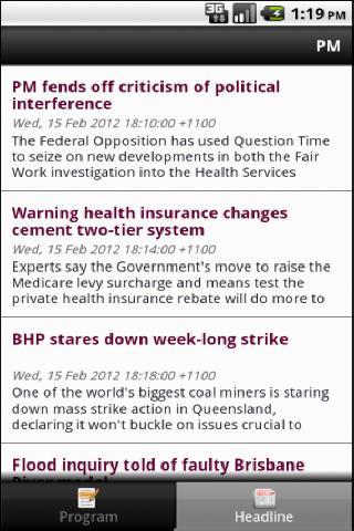 ABC News Radio soll die heutigen Radionachrichten zeigen und eine Datei herunterladen und zuhören.
