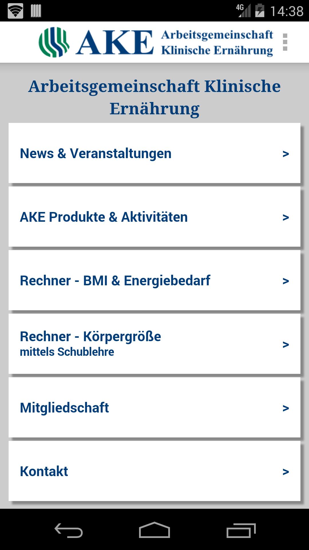 Mit der AKE-App erhalten Sie nicht nur Push-Nachrichten zu aktuellen News und Veranstaltungen; Sie können Informationen zu den AKE Produkten & Aktivitäten abrufen und mit einem integrierten Rechner den BMI und Energiebedarf einfach errechnen. Für Anwender der Schublehre ein zusätzliches Tool: Der Körpergrößen-Rechner! Die App erleichtert den direkten Kontakt zum AKE-Sekretariat.