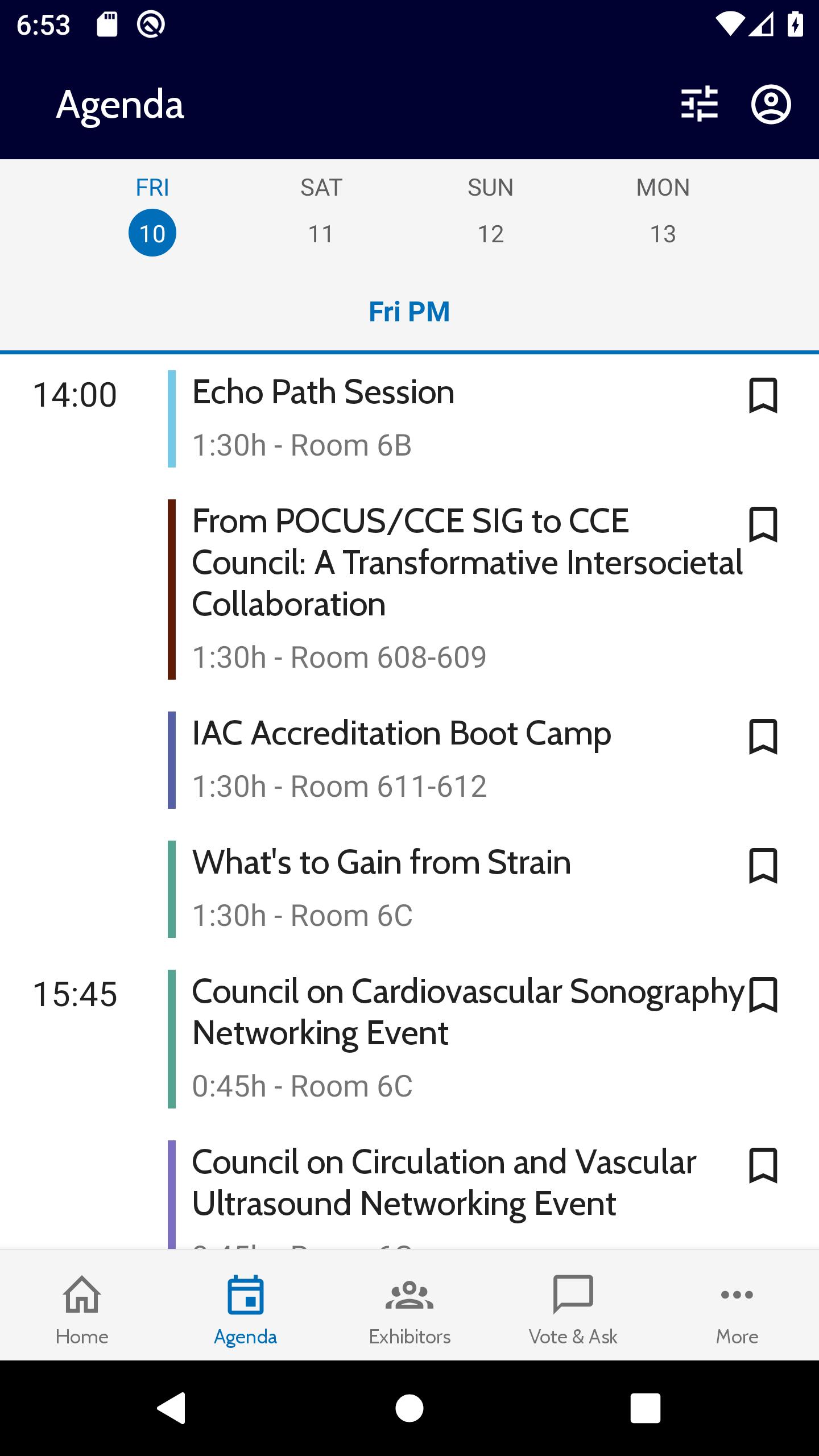 Vor dem ersten Gebrauch müssen Sie die neuesten Konferenzdaten herunterladen. Anschließend können Sie den größten Teil der App offline verwenden, obwohl Updates vor und während der Besprechungen regelmäßig verfügbar sind.