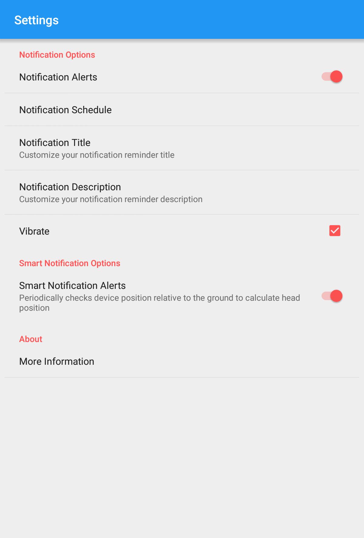 Die richtige Haltung ist einer der wichtigsten Aspekte bei einer guten Gesundheit. Oft kann ein geringer Rücken und ein schlechter Nacken zu ernsthaften Gesundheitsproblemen führen. Mit „ Posture Reminder “ können Sie Zeitintervalle festlegen, in denen Sie benutzerdefinierte Benachrichtigungen erhalten, um Sie daran zu erinnern, Ihre Haltung zu beheben.