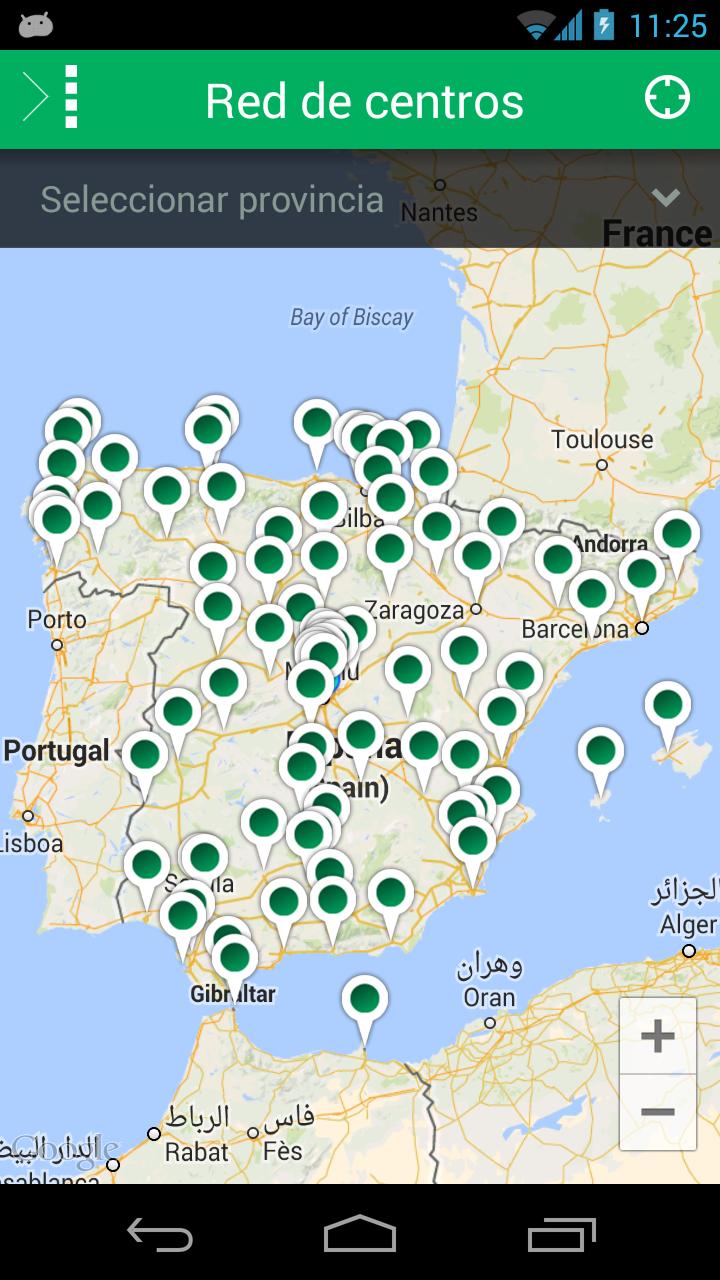 Suchen Sie das nächste Zentrum der MePrespa -Bruderschaftsprävention in "Netzwerk der Zentren" und visualisieren Sie die verfügbaren Zentren auf der Karte. Wenn Sie eines davon auswählen, können Sie die Daten für den Kontakt sehen und sogar einen Termin zur Verwirklichung der medizinischen Untersuchung anfordern. Es wird ebenfalls angezeigt, wie man von seinem aktuellen Standort in ein Zentrum gelangt.