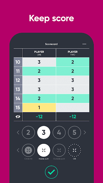 • Erstellen Sie Scorecards für Einzel-, Doppel- oder Teamrunden