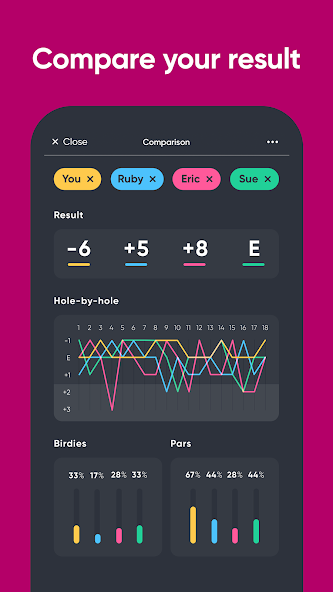 • Vergleichen Sie Ihre Ergebnisse und Statistiken mit anderen und anderen mit anderen auf Ihrer Karte