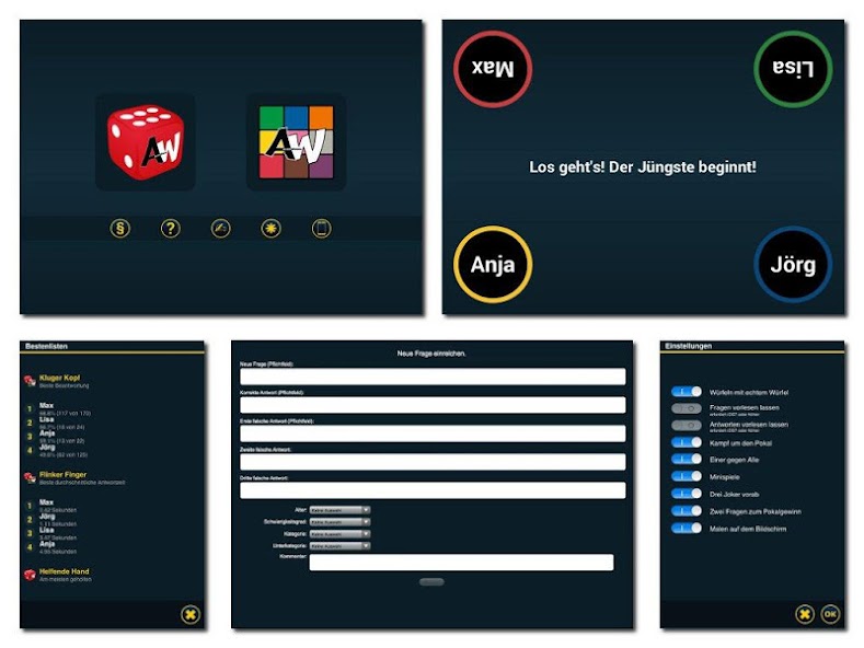 Alleswisser ist ein aufregendes Quizspiel, mit dem Sie Ihr Wissen in zahlreichen Kategorien und Wettbewerben mit anderen Spielern messen können. Das Besondere hier ist, dass sich Fragen und Aufgaben an das Alter und das Wissensniveau des jeweiligen Spielers anpassen.