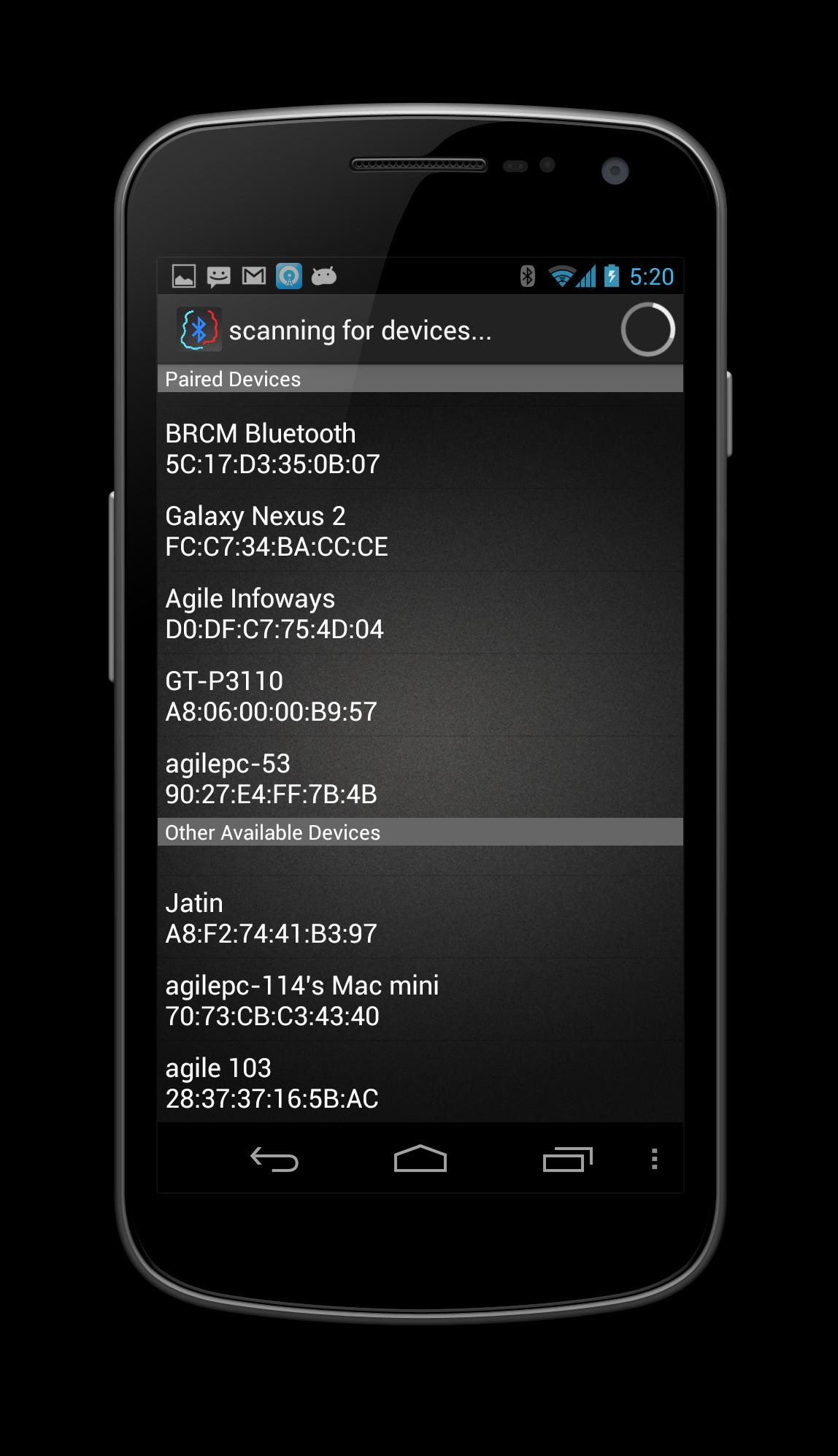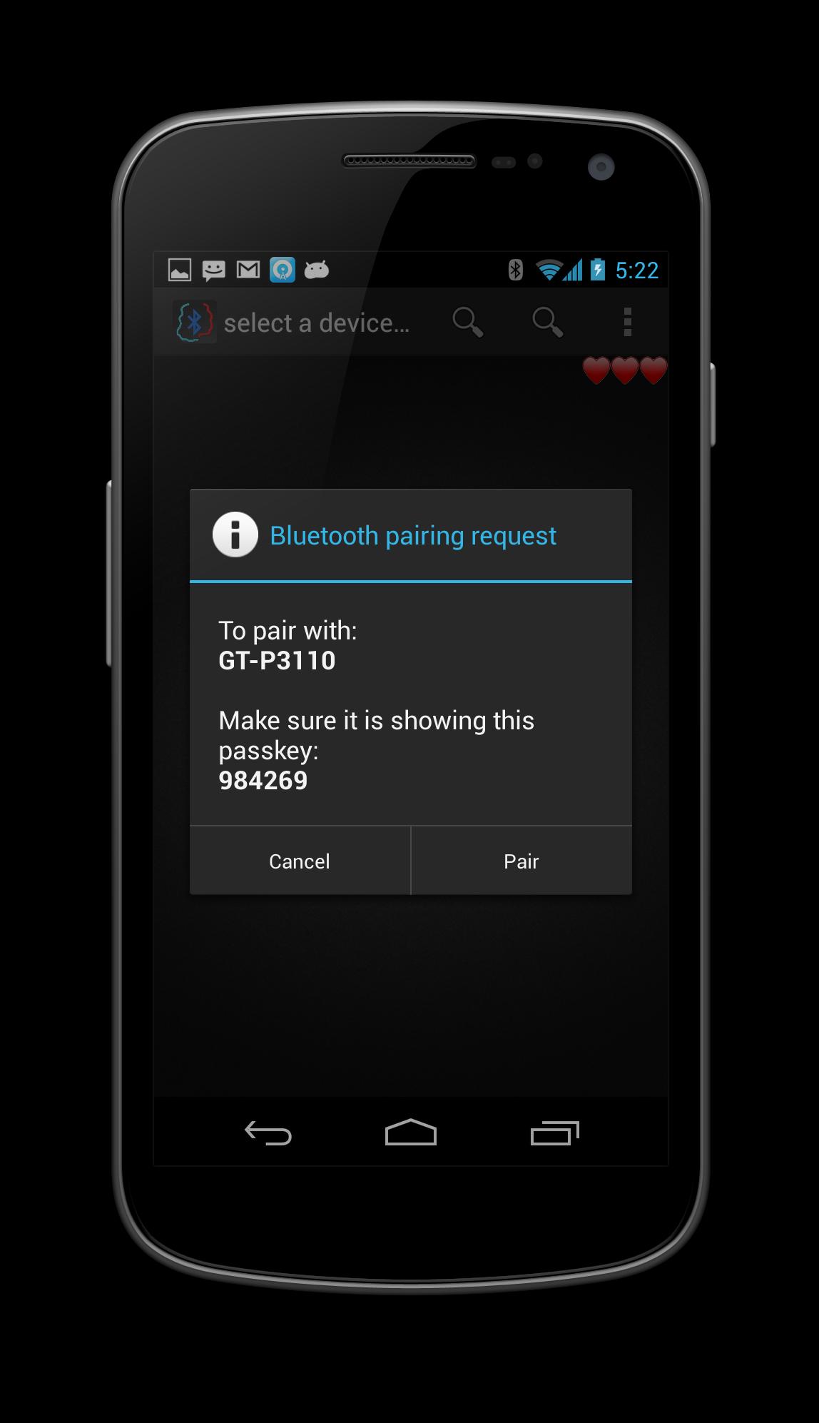 Bluetooth -Anwendung für Spiel.