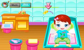 Das kleine Baby weint, weil es eine schmutzige Windel hat. Jeder Babysitter oder eine neue Mama sollte lernen, wie man eine schmutzige Windel wechselt, das Baby reinigt und es bereit macht, sich anzuziehen. Nachdem das Baby sauber ist und die Windel neu ist, sollten Sie es mit den Spielsachen in Baby -Pflegespielen unterhalten.