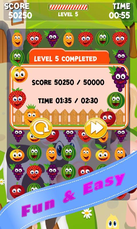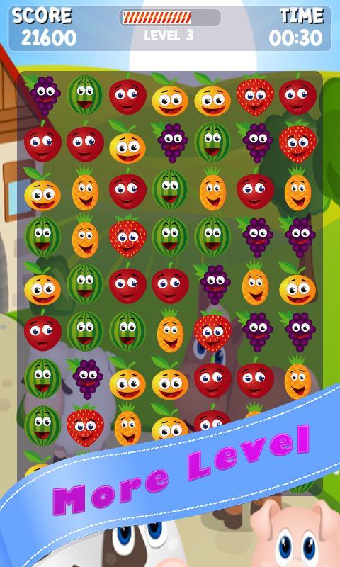 Diese Spiel -App wird für Kleinkinder, Kinder, Jungen, Mädchen, Männer, Frauen und alle Personen in Ihrer Familie empfohlen. Mit den schönen Cartoon -Früchten, Crush -Star, Jewels Mania, Crush Mania. Sie können diesen verrückten und süchtig machenden Farm Pop Crush spielen! Viel Spaß!!