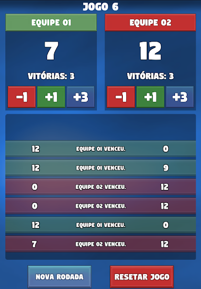 Die App bietet die Möglichkeit, die Namen von Teams/Teams anzupassen und auch die Farben auszuwählen! Es hat auch die Möglichkeit, die Anzahl der Punkte/Ziele für jedes Spiel auszuwählen.