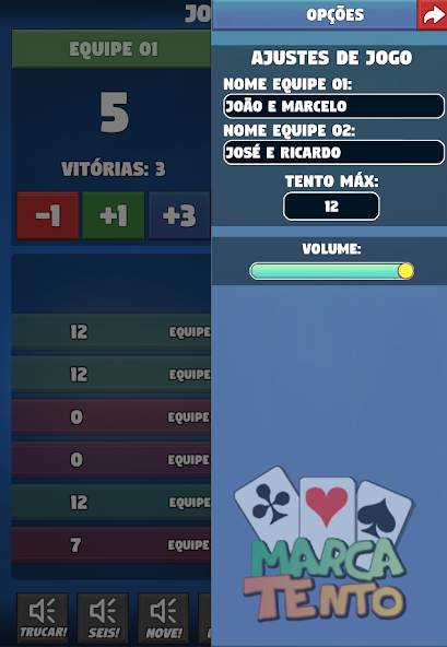 Der Marca Tento de Truco verzeichnet auch die Gesamtzahl der gespielten Spiele und die Punktzahl jedes Spiels, um diesen Zweifel an der Gesamtpunktzahl nicht zu generieren und keine Ente zum Sieg zu zählen!