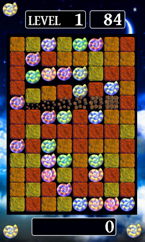 Machen Sie sich bereit für eine schnelllebige Hülle! Ziehen Sie Ihren Finger über unerwünschte Schmutzfliesen, um sie zu zerbröckeln zu lassen, und lassen Sie Ihre schimmernden Muscheln an Ort und Stelle fallen! Richten Sie sie für Punkte und mehr Zeit in horizontalen Reihen aus! Berühren Sie ein "B" -Symbol, um alle Blöcke dieser Farbe zu zerstören. Berühren Sie ein "C" -Symbol, um alle Blöcke dieser Farbe in Muscheln zu verwandeln!