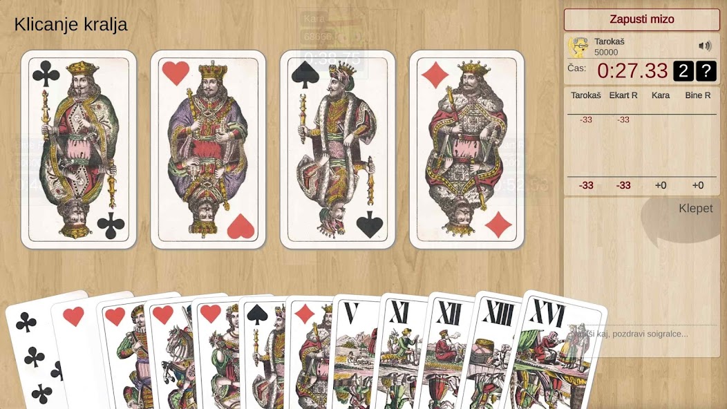 Valat.si ist eine beliebte Online -Website, auf der Spieler Tarok treffen und spielen können. Von nun an können Sie mit einem Telefon oder Tablet in der Hand viel bequemer spielen.