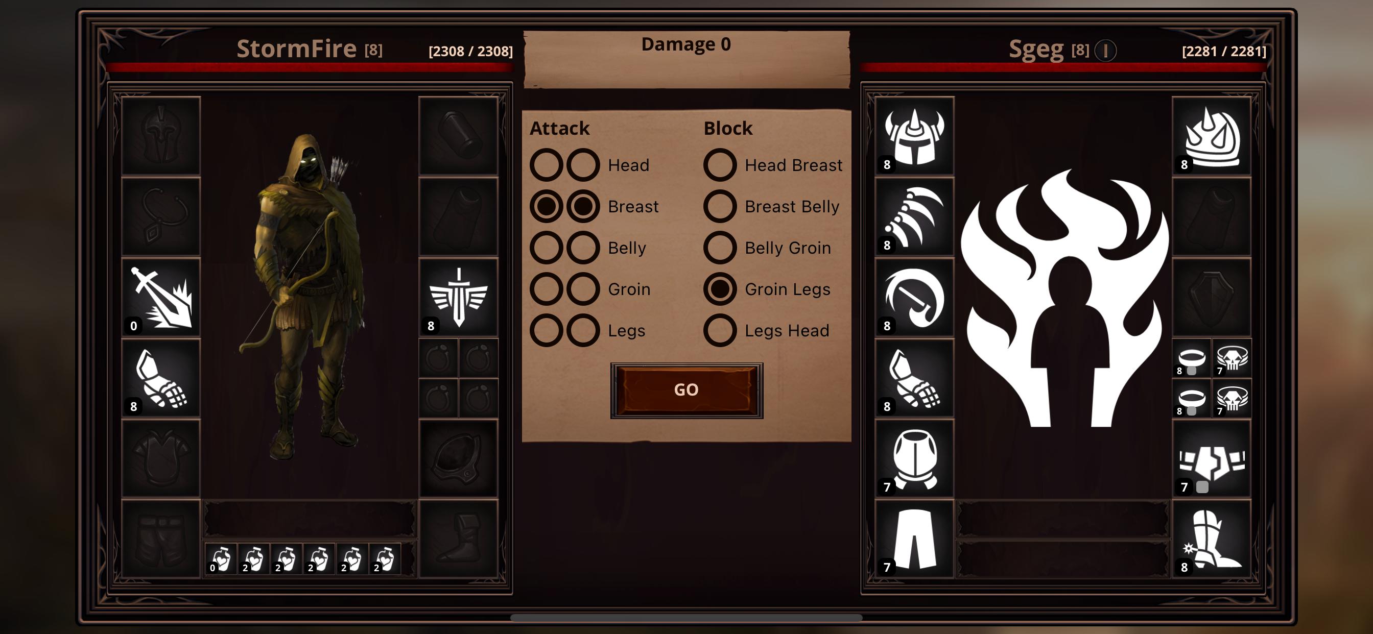 Kampf - tritt in Textstilen auf, in denen der Held und der Gegner die Punkte für Angriff und Block auswählen. Im Falle eines Sieges bekommt der Held Erfahrung, aber manchmal kann Geld und Sache fallen gelassen werden. Erfahrung und fallengelassene Gegenstände sind die Hauptmethode, um den Helden zu entwickeln.