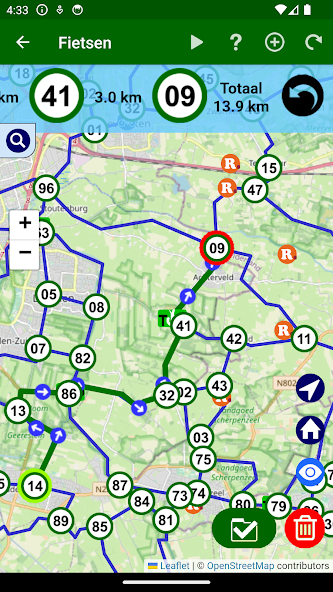 Use el sistema de nodos de bicicleta y caminata en los Países Bajos, Bélgica y las fronteras de Alemania para planificar sus propias rutas de bicicleta. Después de hacer su ruta, puede guardar, enviarla por correo y compartirla.