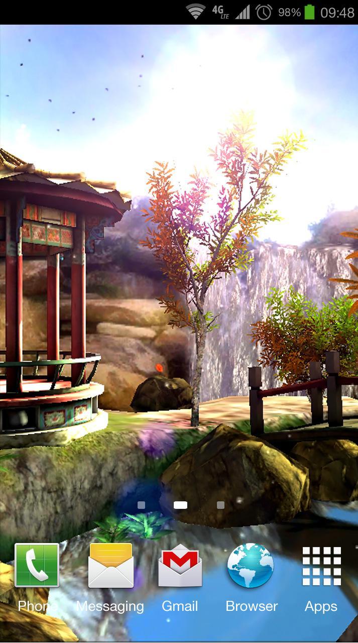 ¡Un increíble fondo de pantalla en vivo en 3D en Google Play para su teléfono o tableta! La escena del jardín oriental totalmente 3D le proporcionará un buen humor y lo mantendrá tranquilo durante un día. La casa de té original, las cascadas, la vegetación y el paisaje, las aves voladoras y las hojas que caen le dan a este fondo de pantalla en vivo un aspecto muy realista.