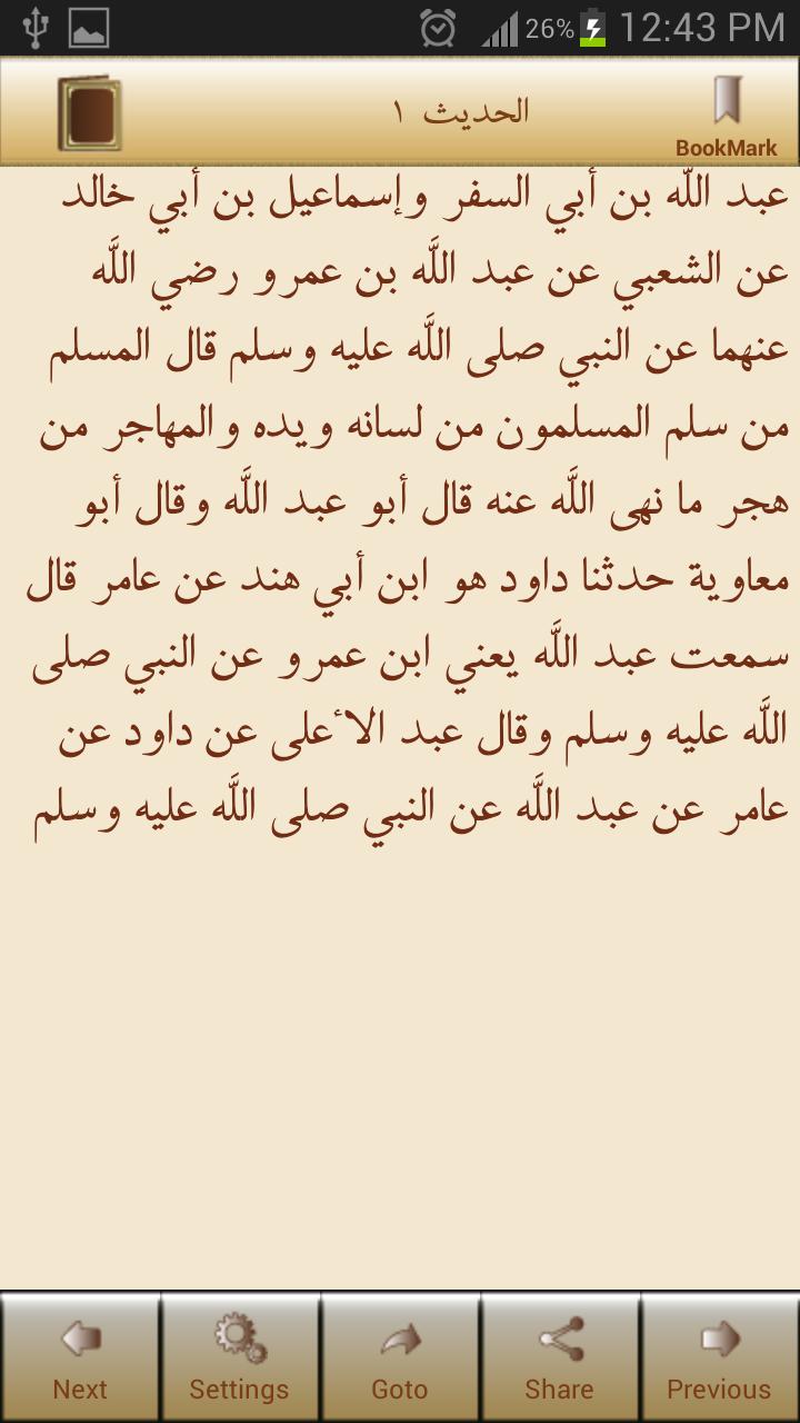Este libro de hadices islmaic para musulmanes en idioma árabe con un diseño simple pero elegante. Se crean características útiles para proporcionar la máxima facilidad de uso de esta aplicación.