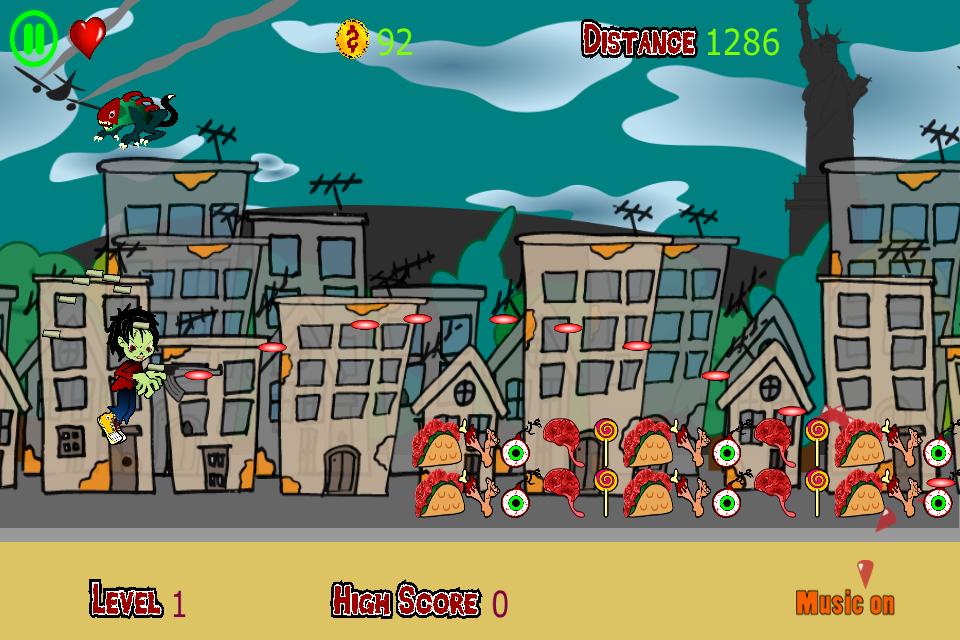 Simplemente toque la pantalla para saltar y mantener al Dirty Zombie en el aire.